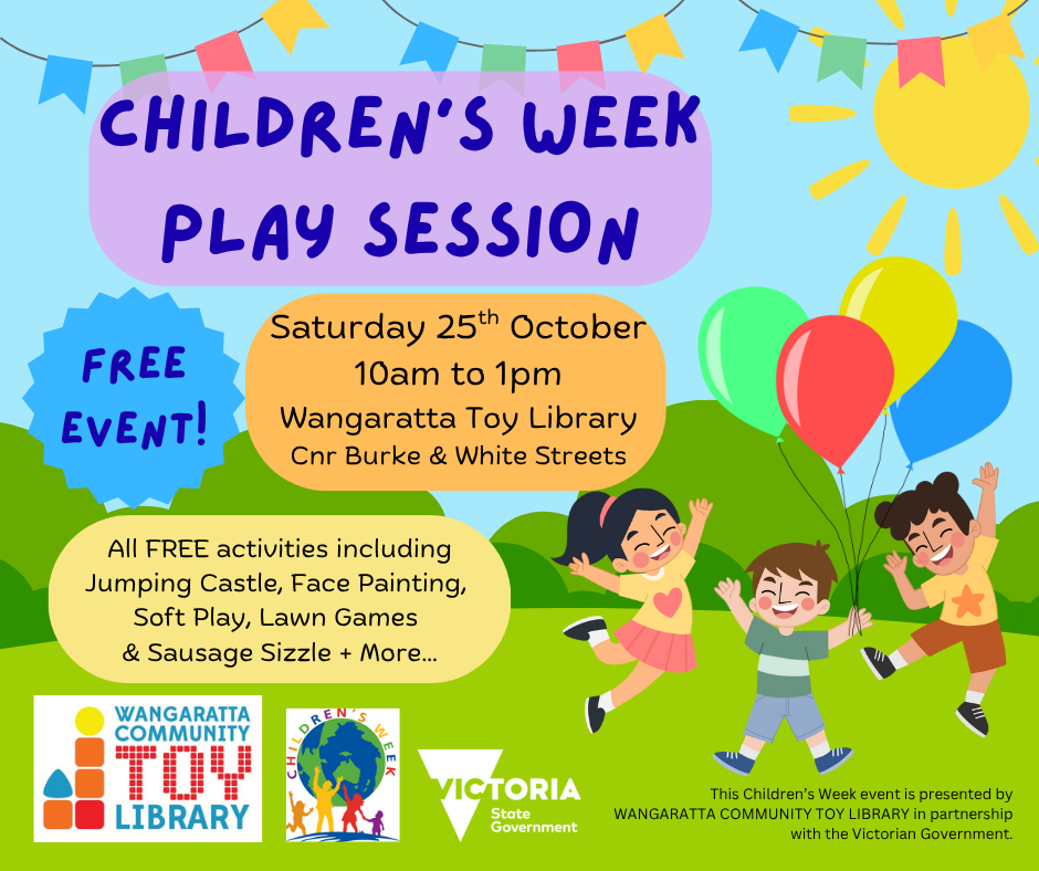 Please join us for our FREE event in celebration of Chidlren’s Week proudly bought to you by our Toy Library Committee in conjunction with the Victoria Government.